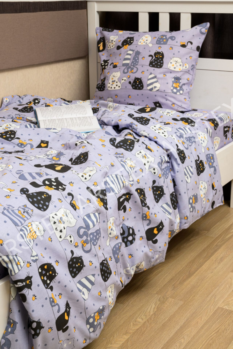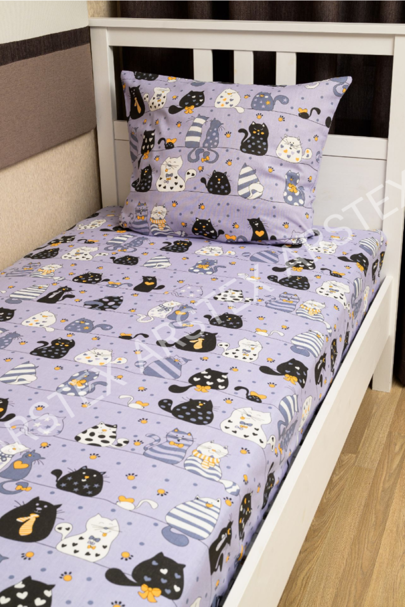 КПБ Коты бязь 1,5 сп с 1 наволочкой